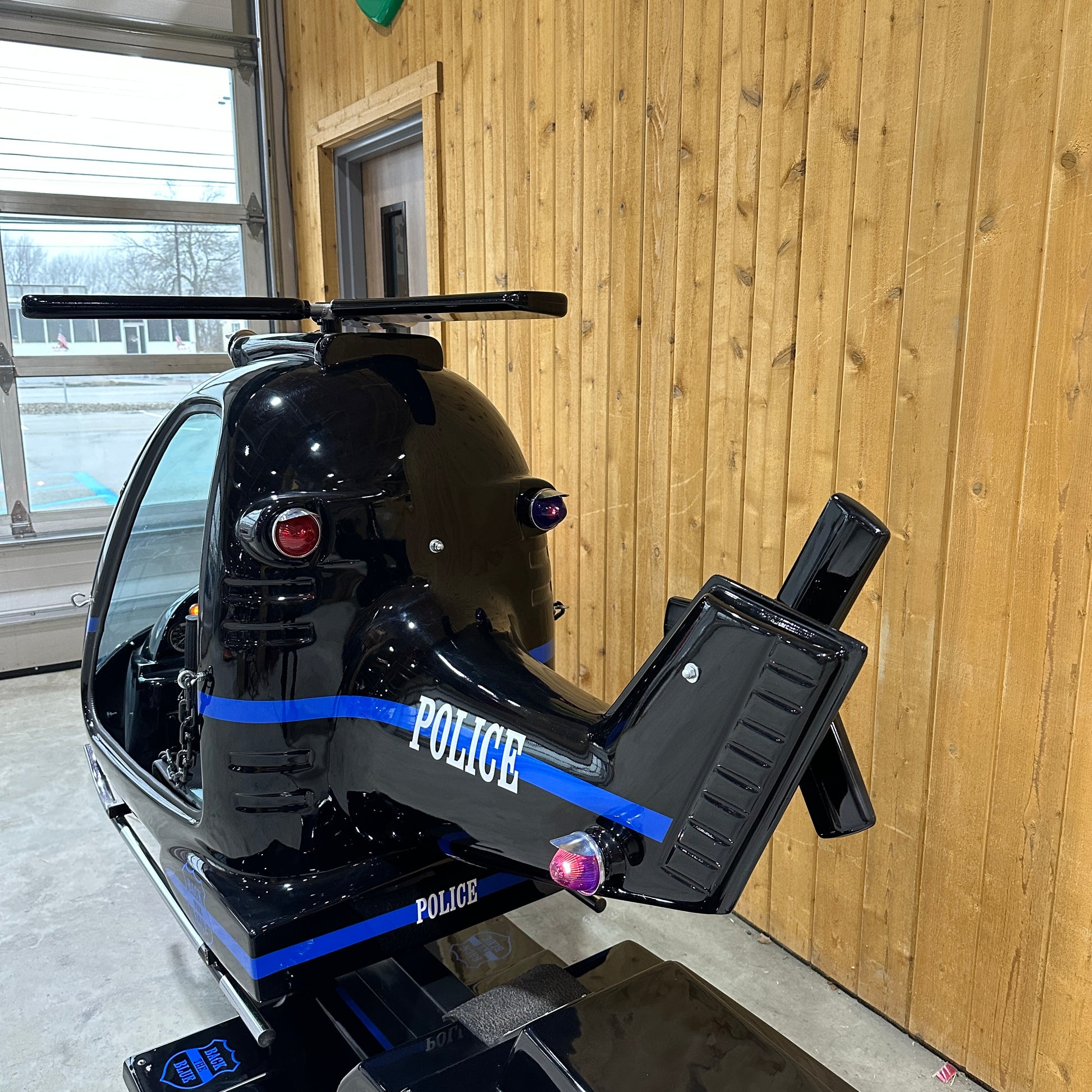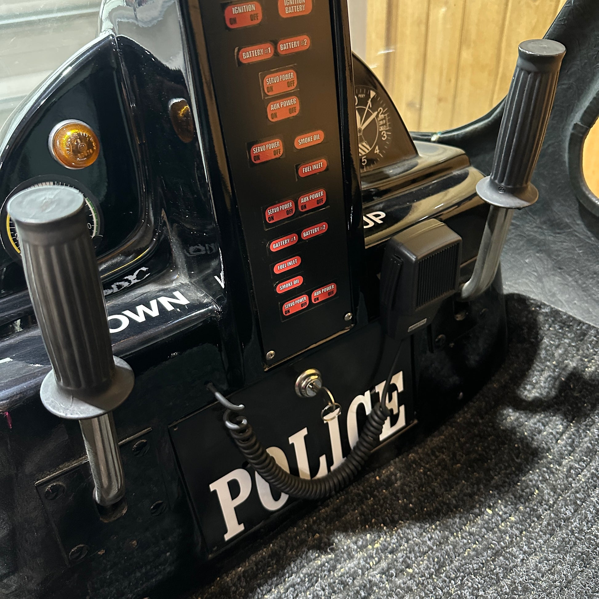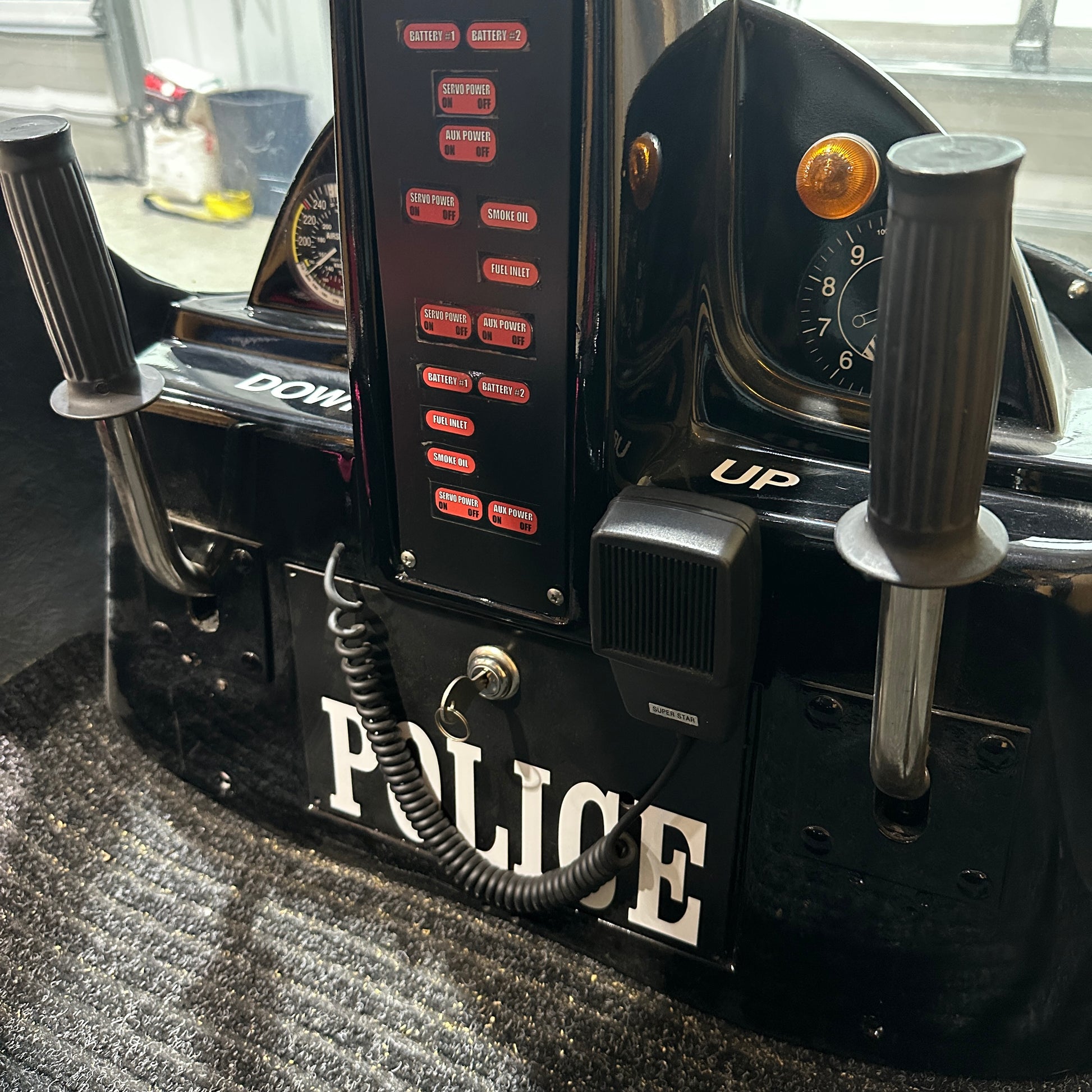 Real dash-mounted police mic. Flashing lights, working control levers, 1 rider. Exceptionally well-finished with black finish, colored lights, and carpeted floor.