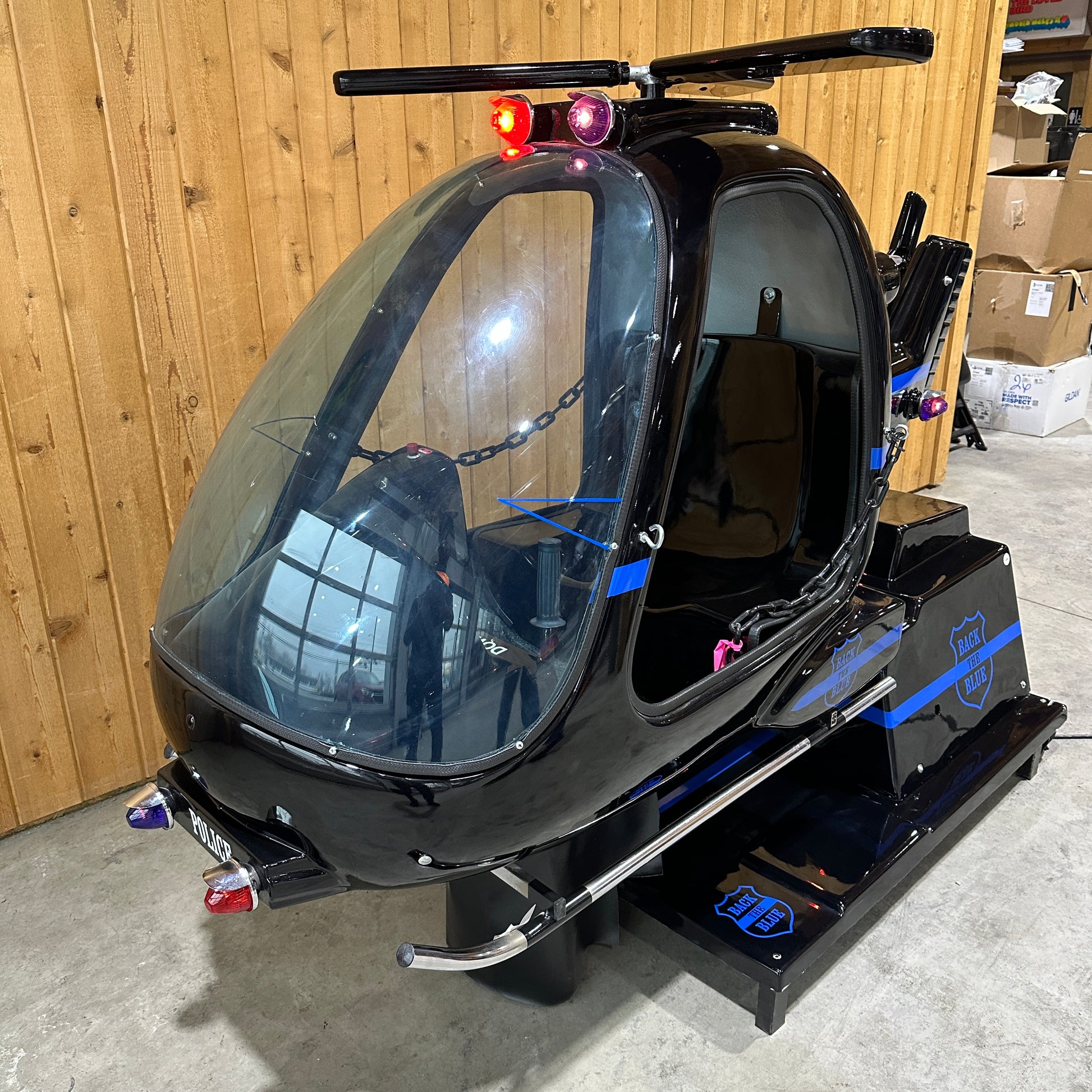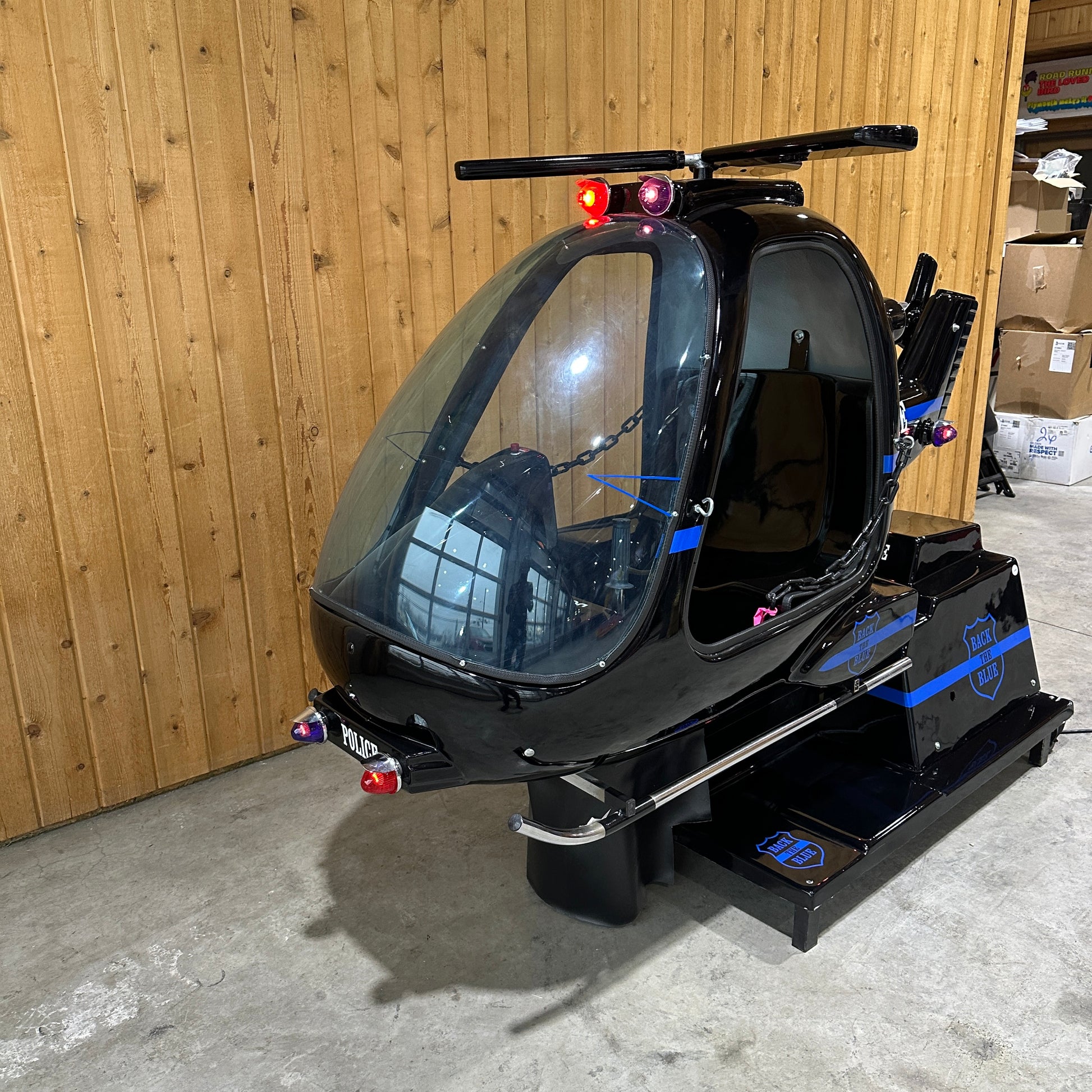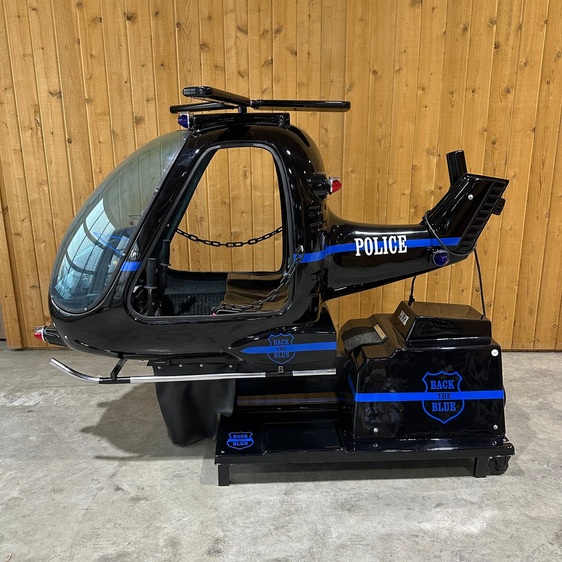Real dash-mounted police mic. Flashing lights, working control levers, 1 rider. Exceptionally well-finished with black finish, colored lights, and carpeted floor.