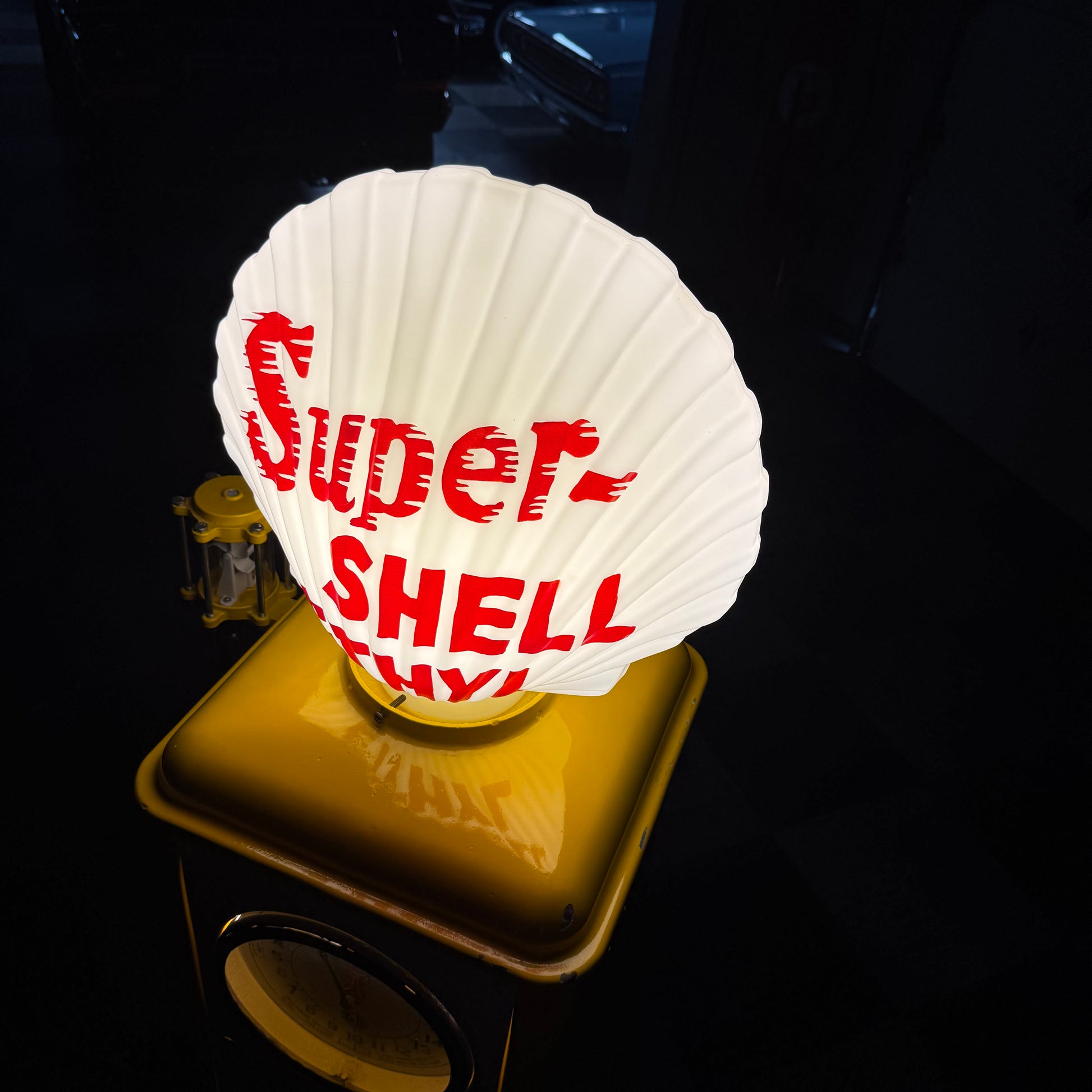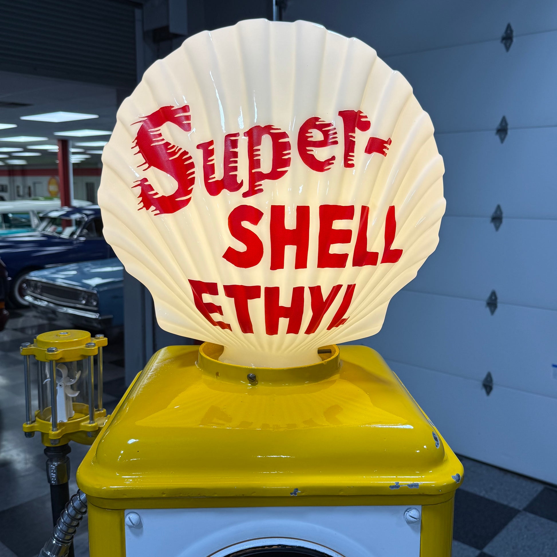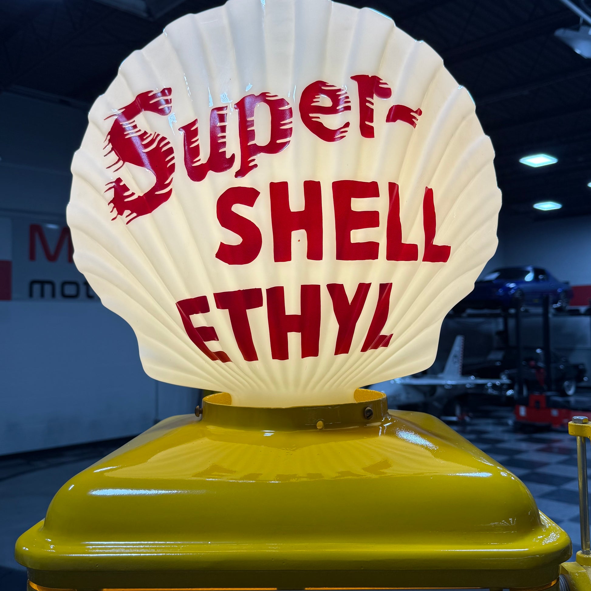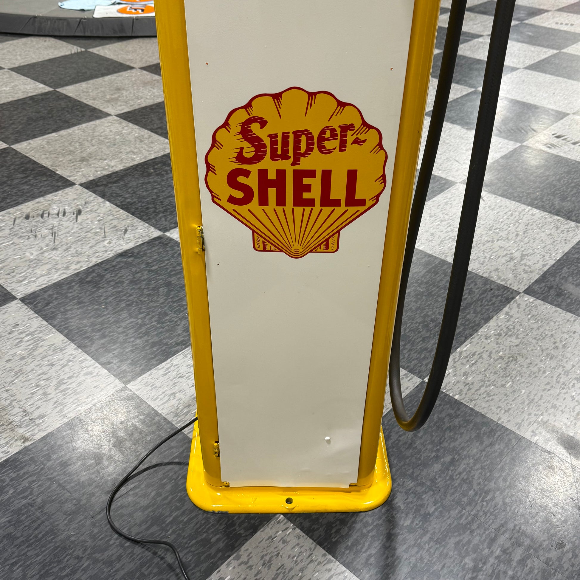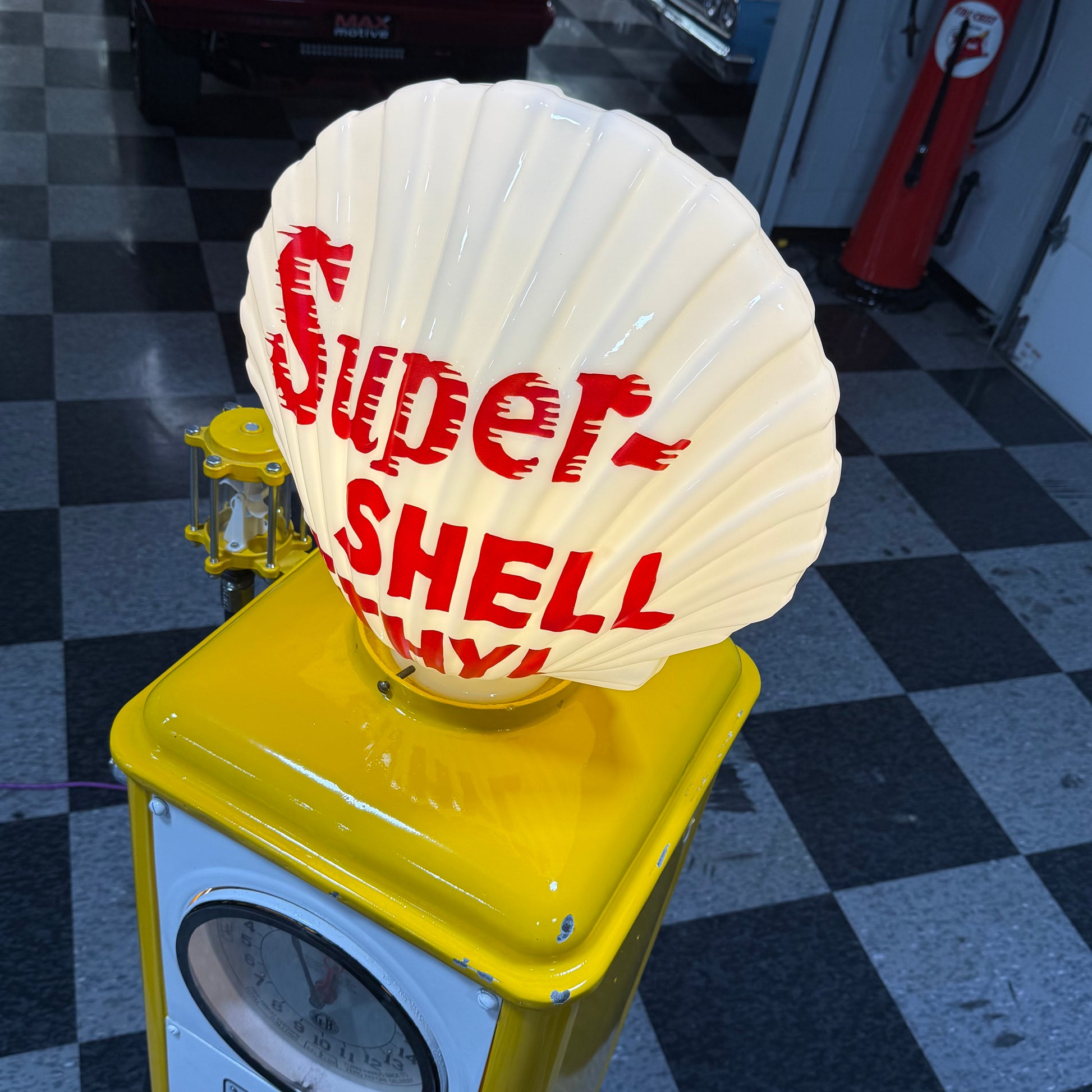 Maxmotive is pumped (come on, just makes sense) to offer this restored Gilbert & Barker 105 Clock face gas pump. This beauty, and I mean beauty of an antique is ready for her new home. She has been on display in our dealership for the past 6 years, and has some marks in the paint as shown from being moved to shows. The vinyl decal applied during restoration has scratches in it as pictured on one side. The top of the "shell" is glass. The handle is a Buckeye 800F. The base of the pump has Made in USA, stamped "F". The serial number is pictured, but as you can see the paint has filled the serial numbers over. The Gilbert & Barker clock face pump is one of the most sought after, and tough to find vintage pumps out there. The one LED bulb is on when plugged in, and off when unplugged.