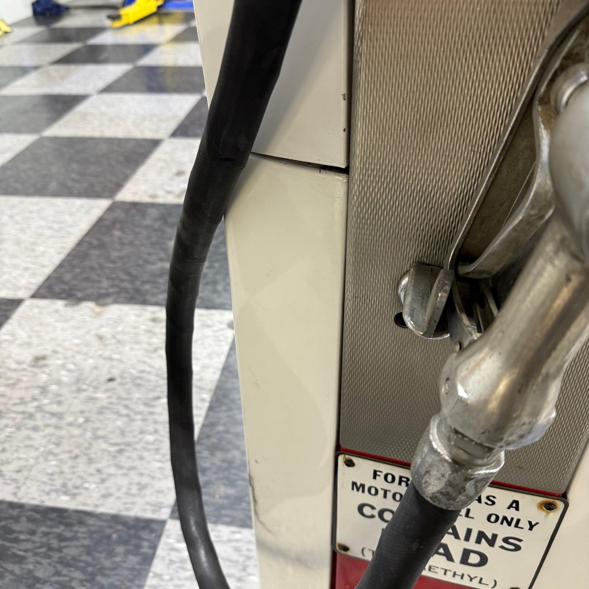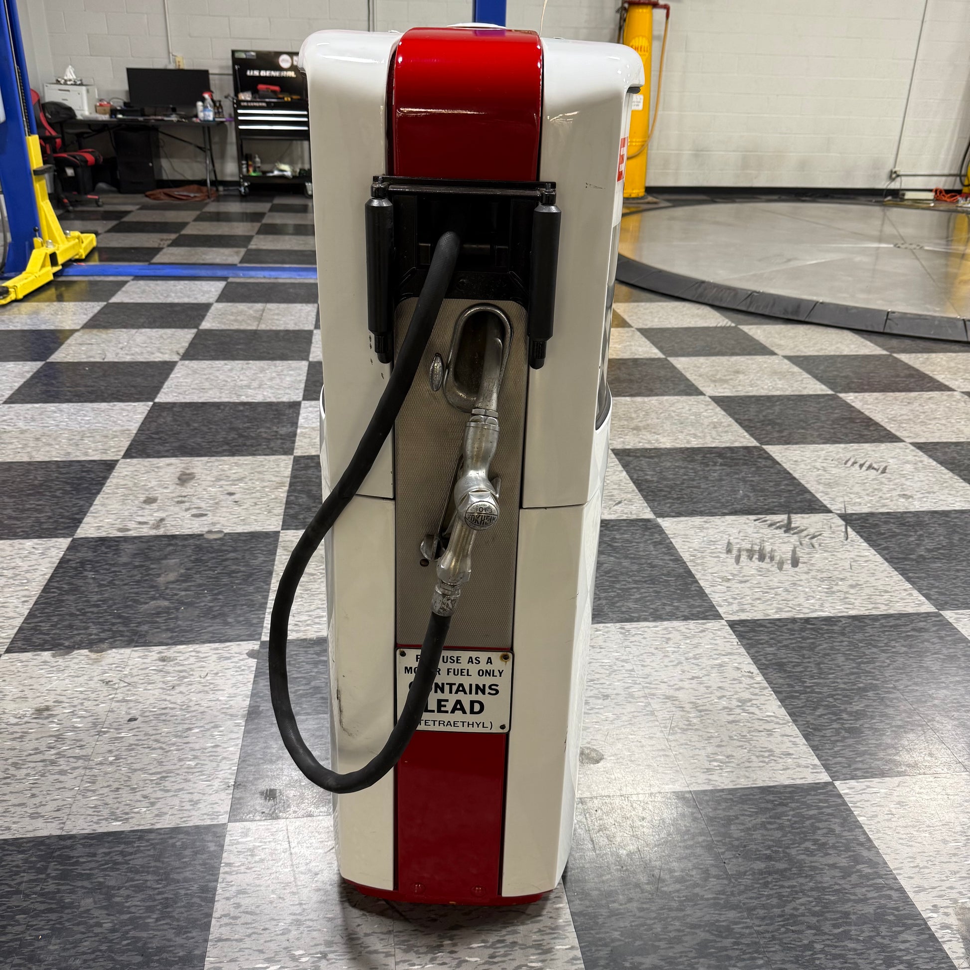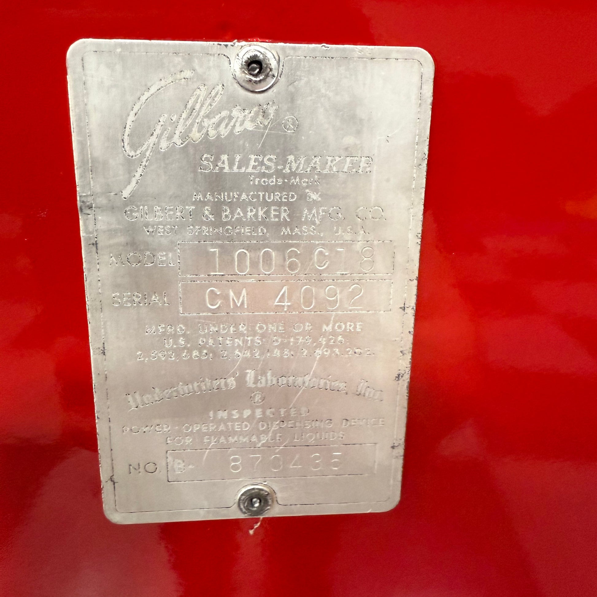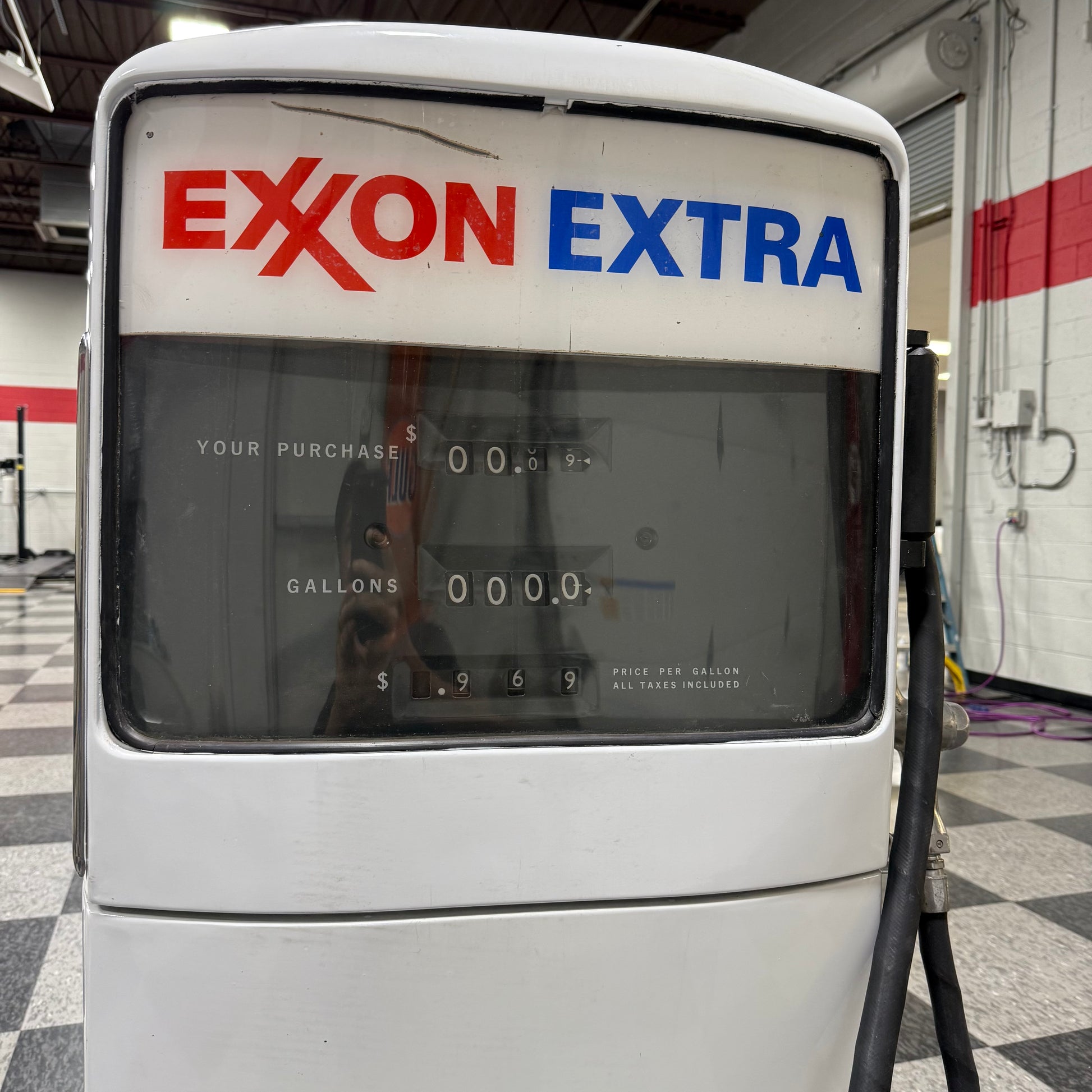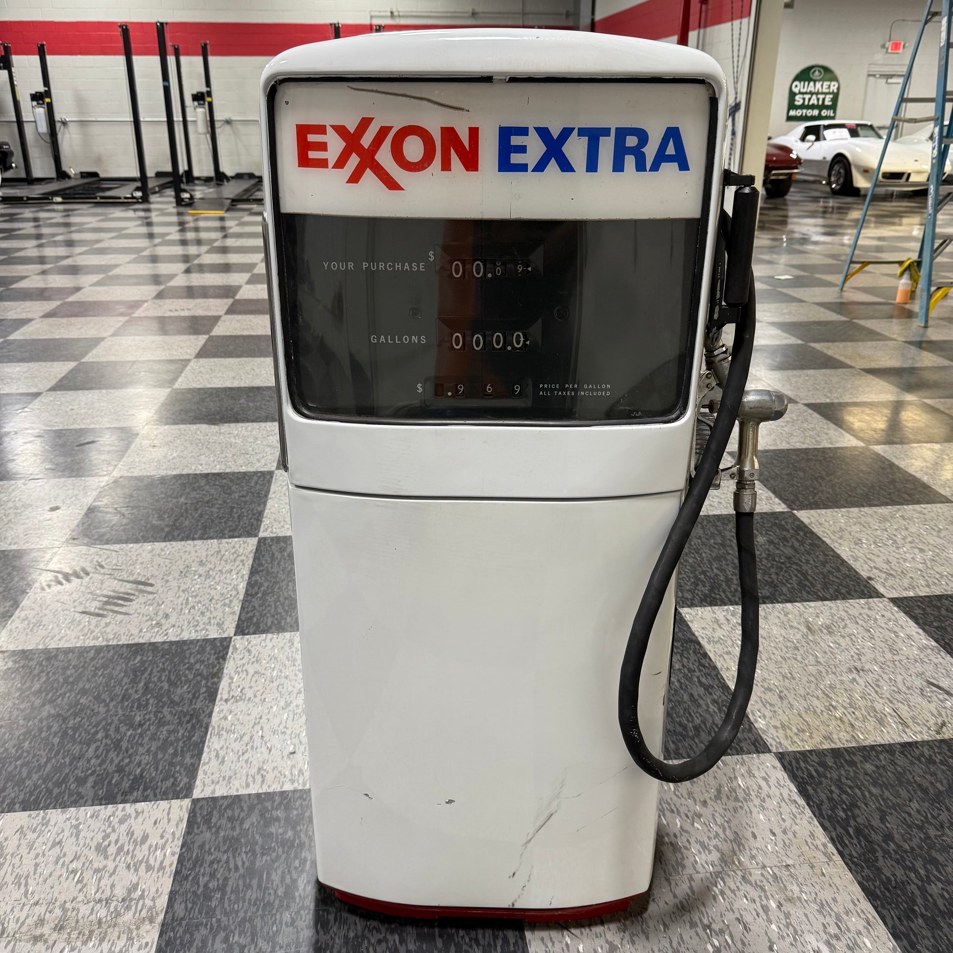 Maxmotive is proud to offer this original and un-restored 1970 Exxon gas pump. The pump nozzle is a Tokheim 1063. The base is a Gilbert & Barker model #1006C18. The serial number is CM 4092. This hard to find vintage pump is un-restored, and has scratches and dings as shown. The face covering the gauges is plastic on each side. This pump is fully ready to offer leaded gas on display with your collection! These vintage pumps are hard to find this complete, great opportunity to restore or proudly display it in the condition it is in.