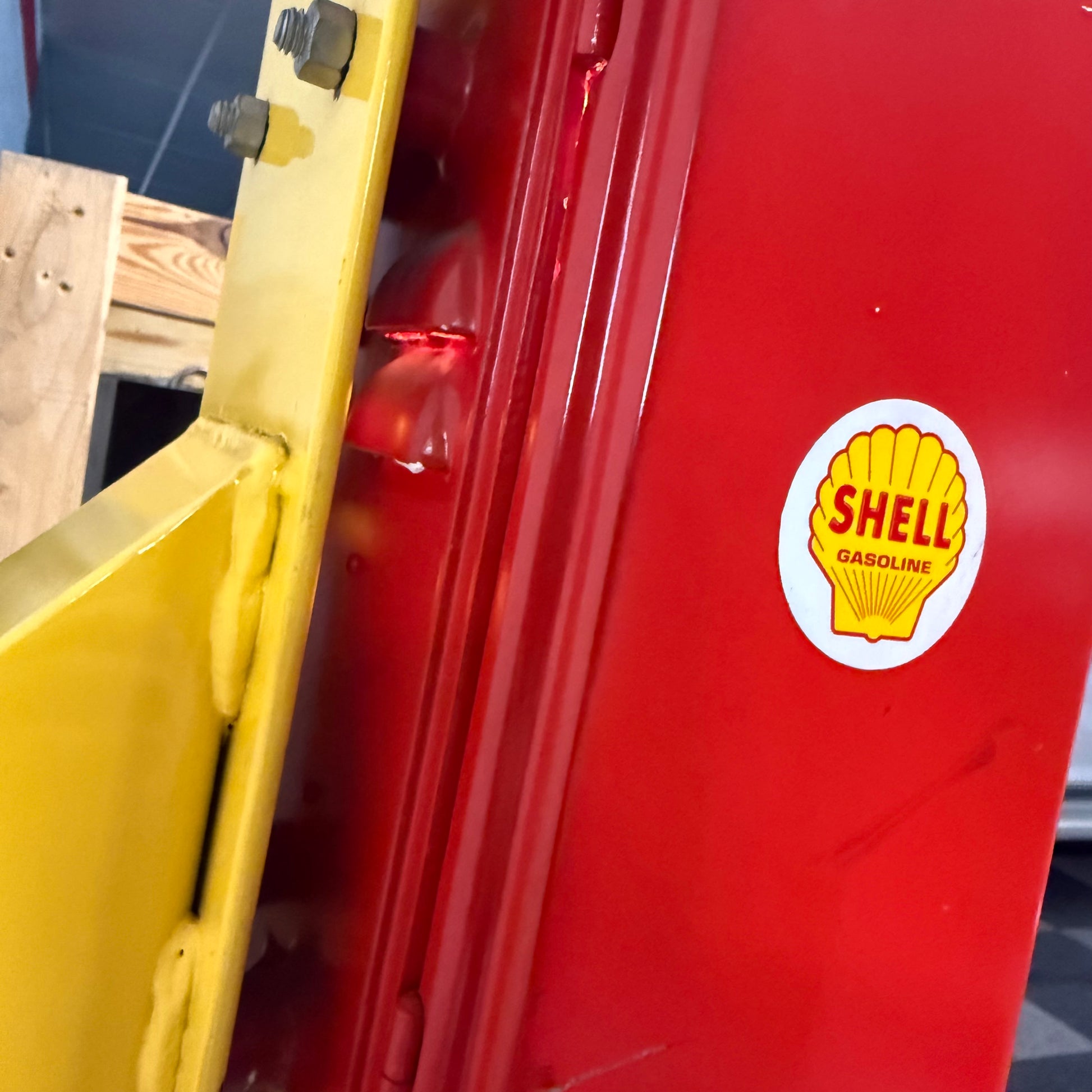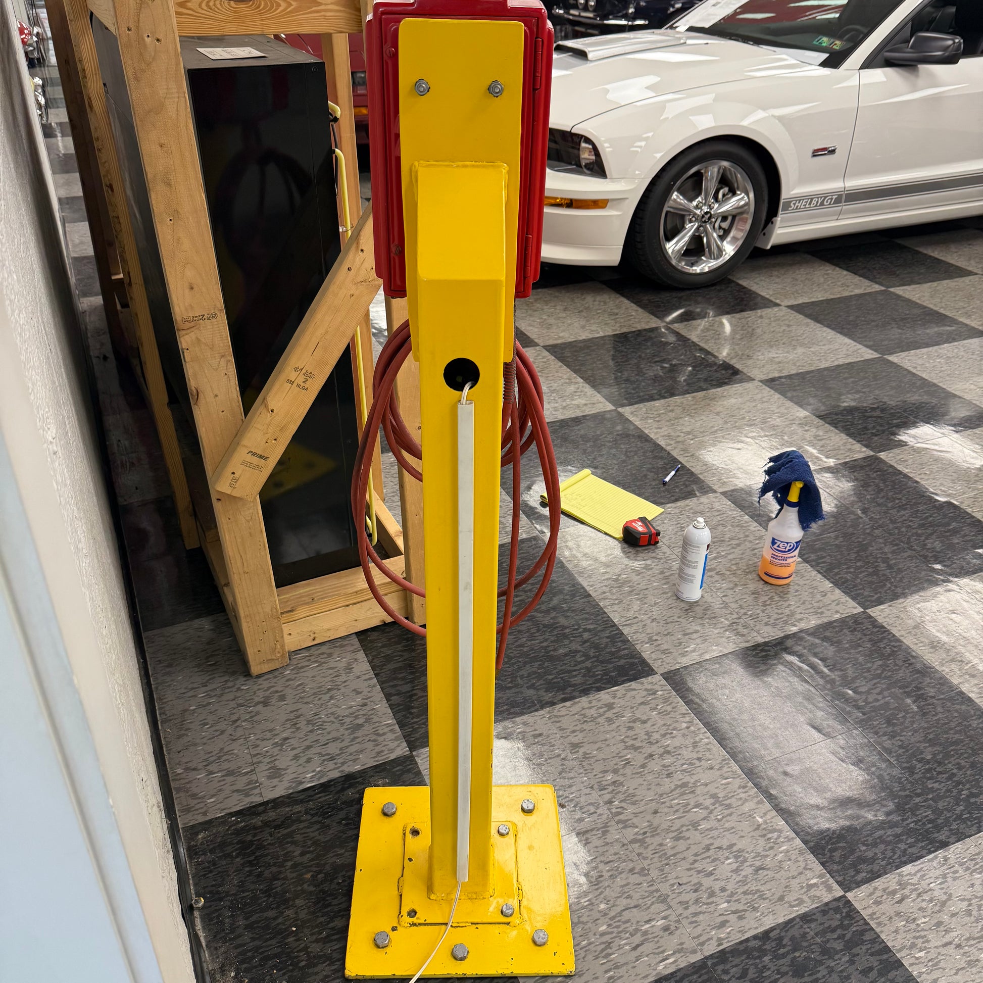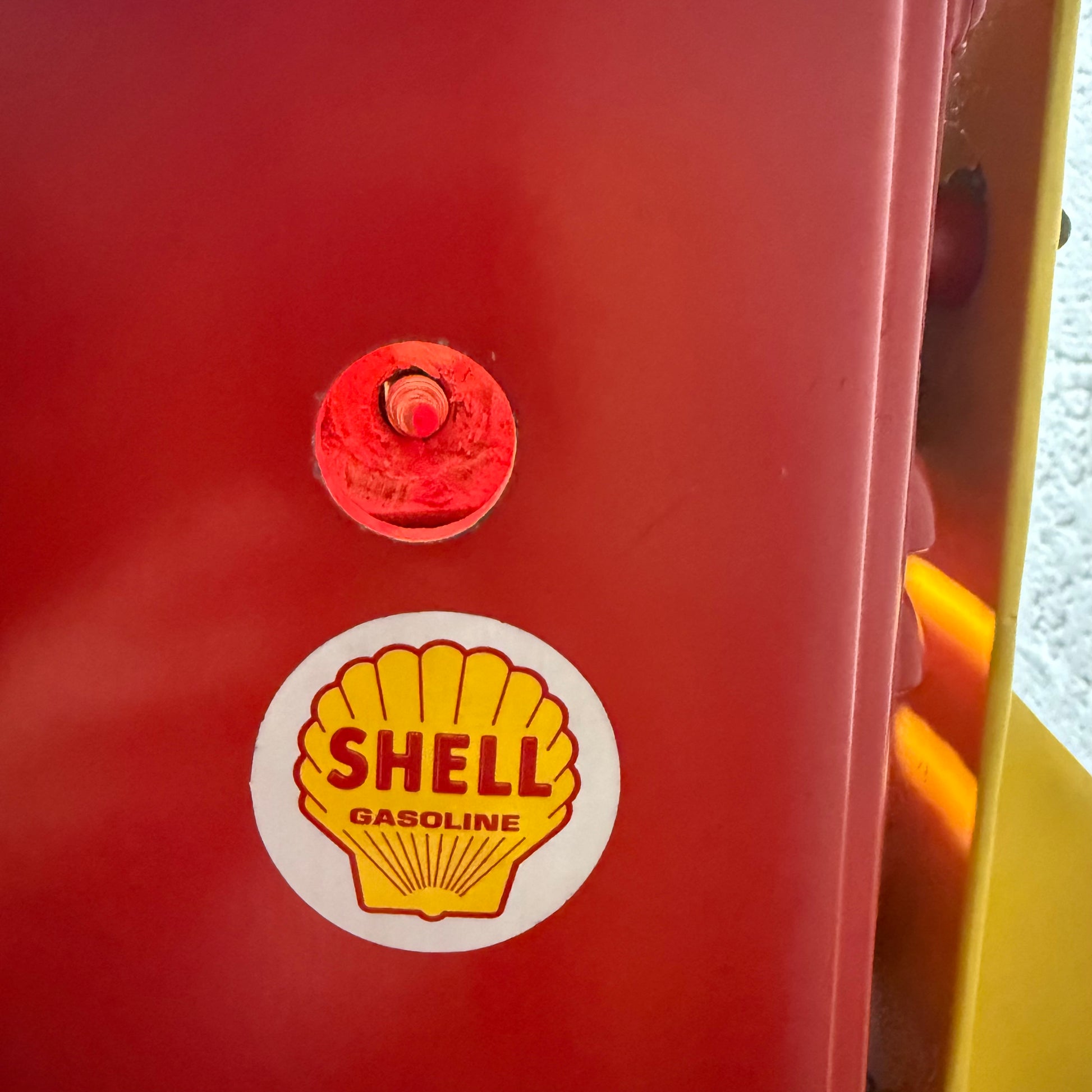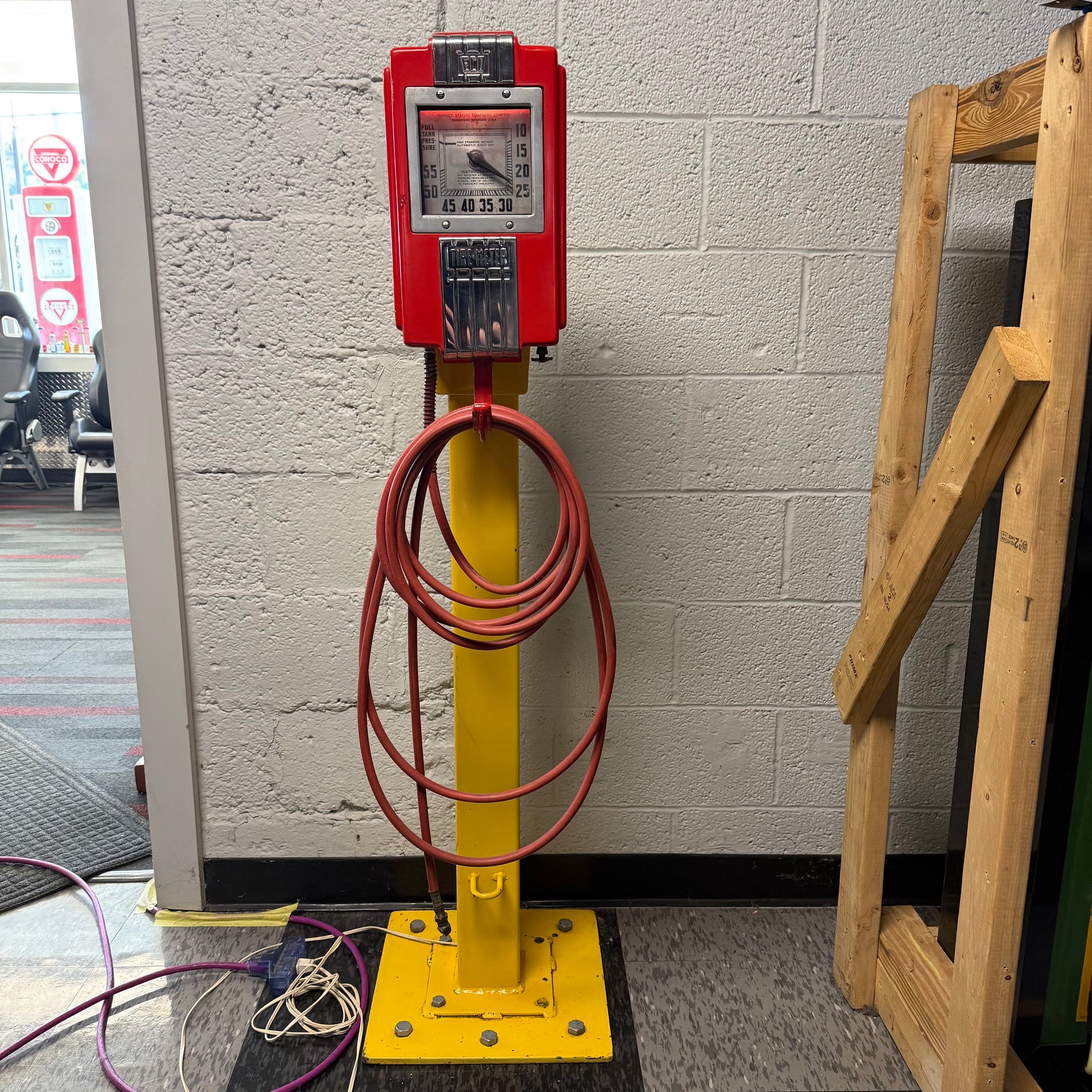 This vintage Eco tire Air Meter is for sale and looking for her new forever home! This Service Station equipment Company was based out of Muskegon Michigan U.S.A. This air meter was restored in a Shell color theme approximately 8 years ago. It has been on display in our dealership during that time. There are some scuffs and marks in the finish as pictured from being on display. The yellow paint on the base behind the red Eco tire meter has some paint peeling as shown. The Shell logo is a vinyl decal. It does light up as shown in the pictures. It has a standard two prong wiring connector as shown. The light turn ons on when plugged in, and turns off when unplugged. There is not a control switch for the light.
