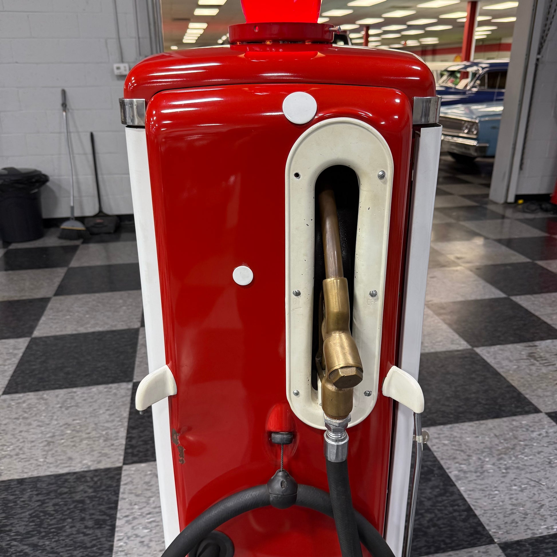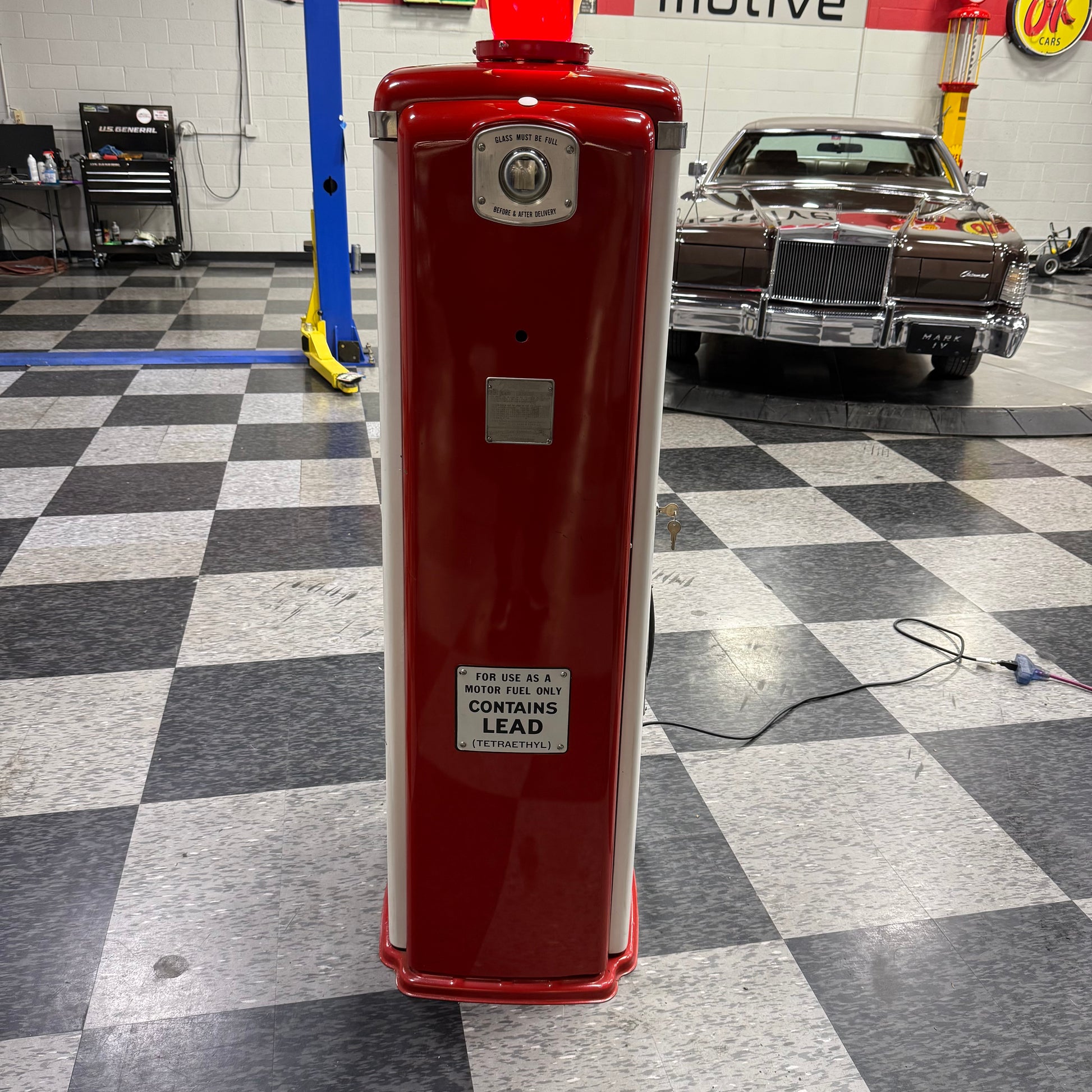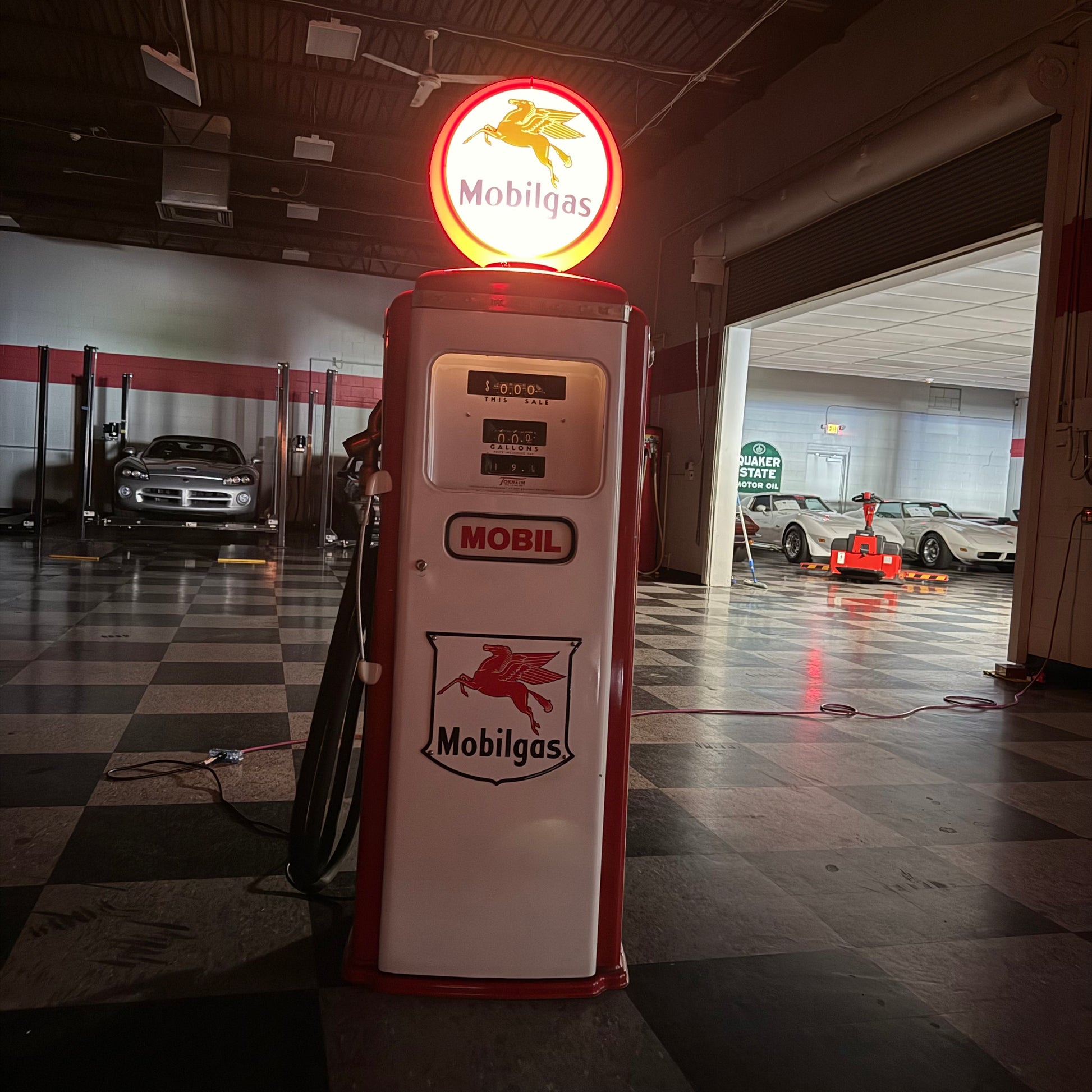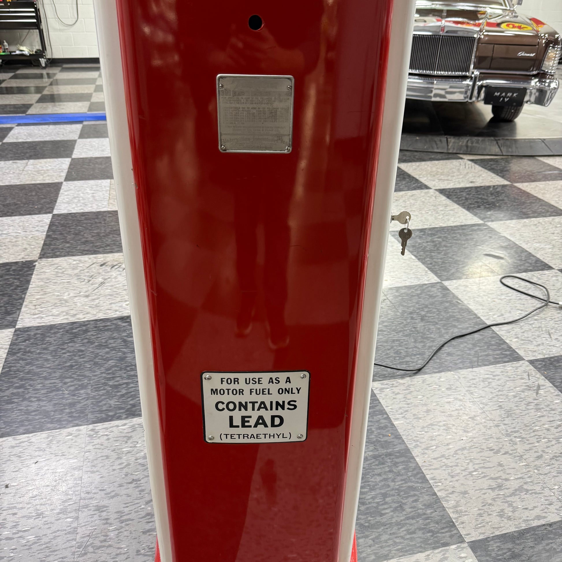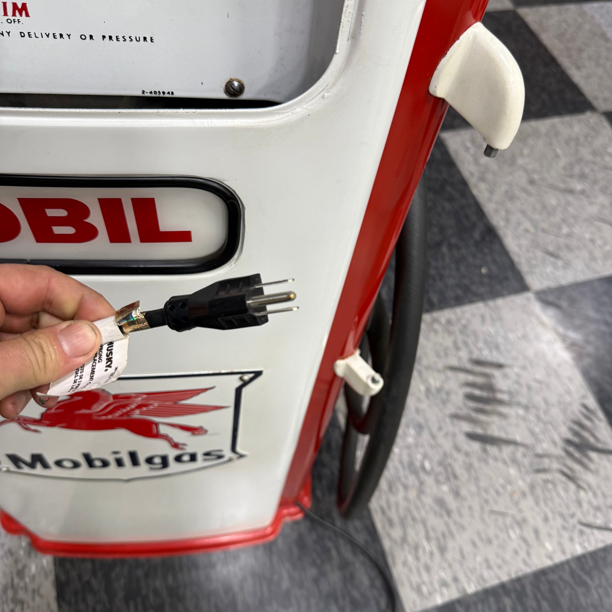This vintage Mobilgas 39 Tokheim pump is ready for her new home and up for sale as the dealership downsizes it's collection. This is a Model 39 original pump. It is a type NAP. The serial number is 828706. This pump was usually found in the late 1940's and early 1950's. The remaining mechanisms inside are included, but this is a non-functional pump being sold for display. Both doors of the pump open. The globe on top is a re-production globe. The glass on each side is missing as shown in the photos. This is an older restoration, and has been used for displays at multiple car shows. There are some marks and scrapes as pictured. Beautiful antique piece ready to join your collection or car cave.