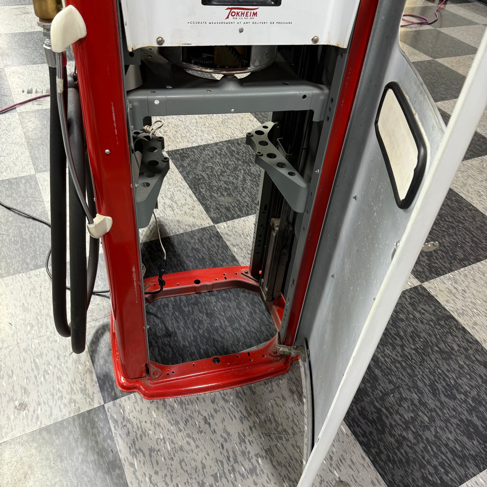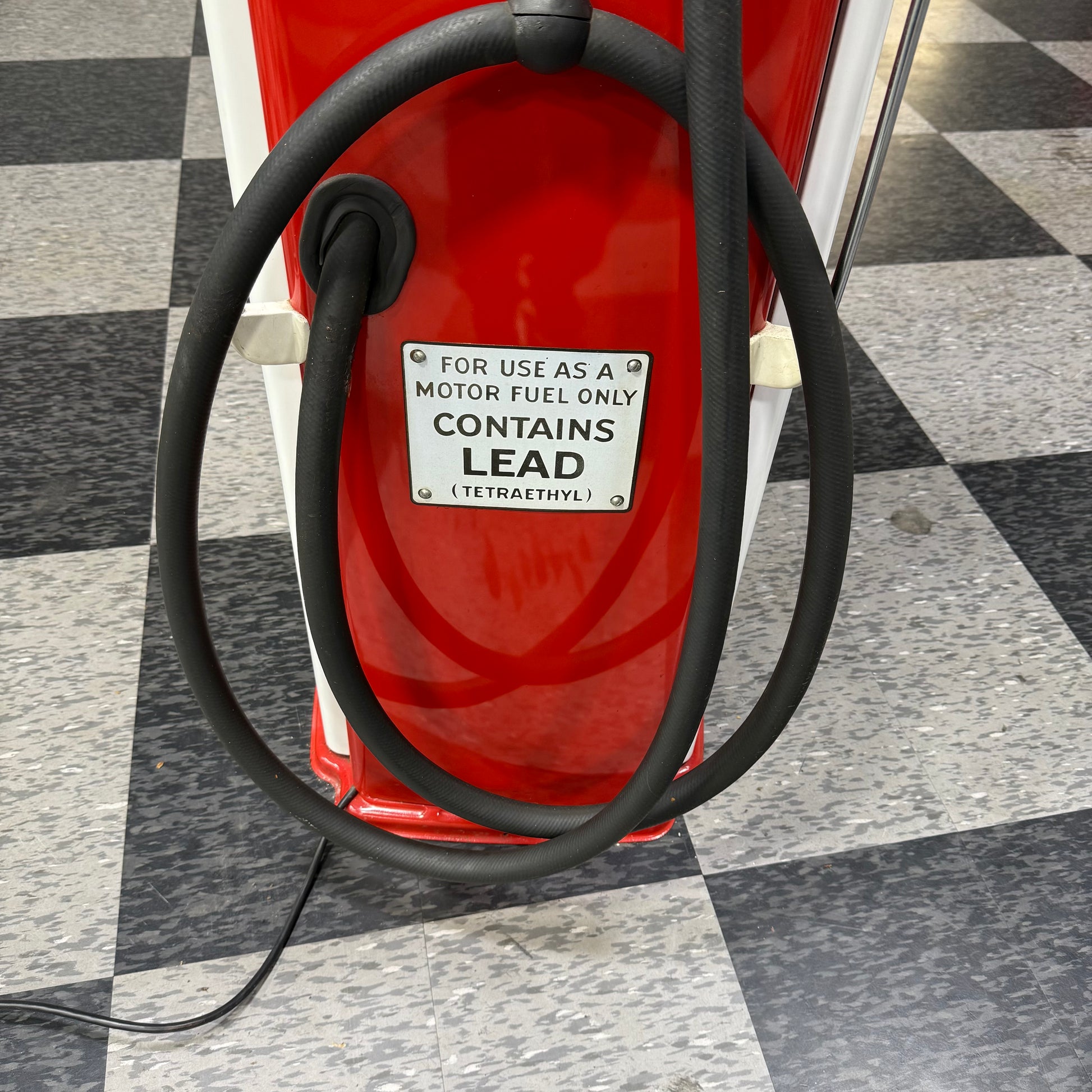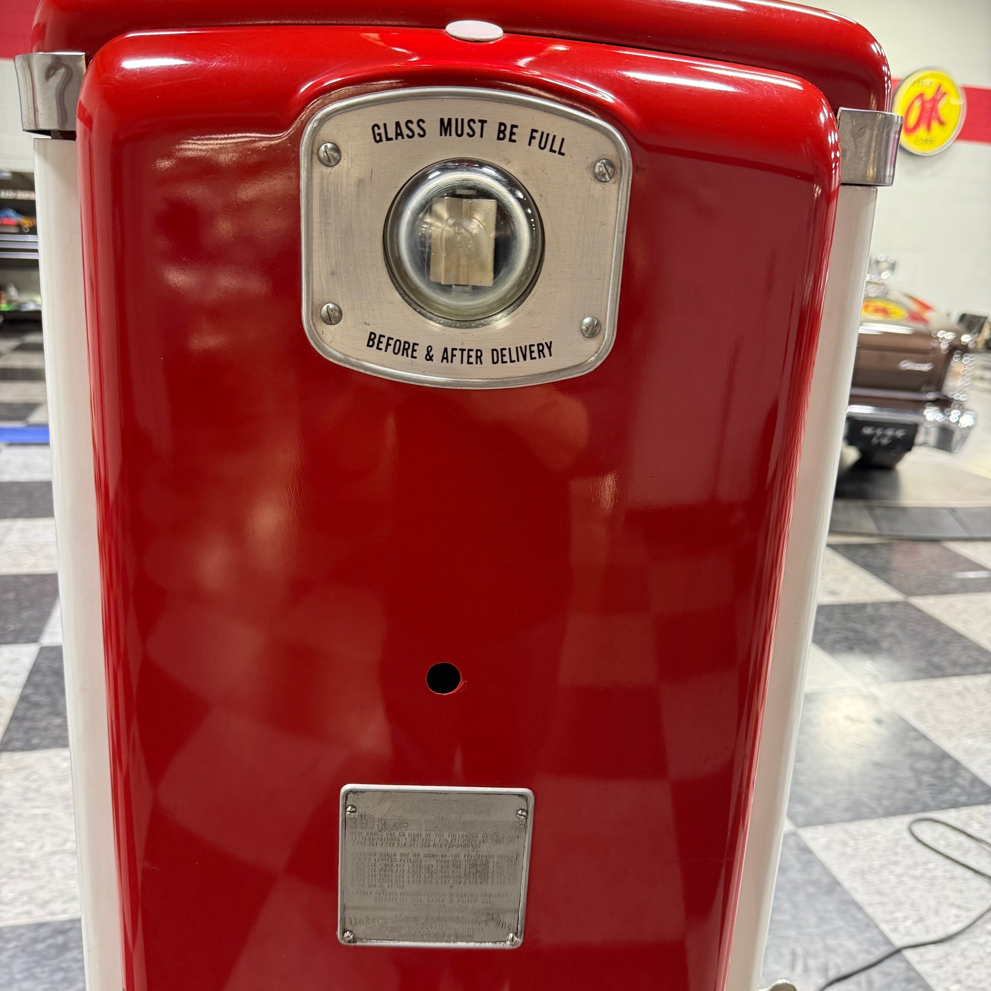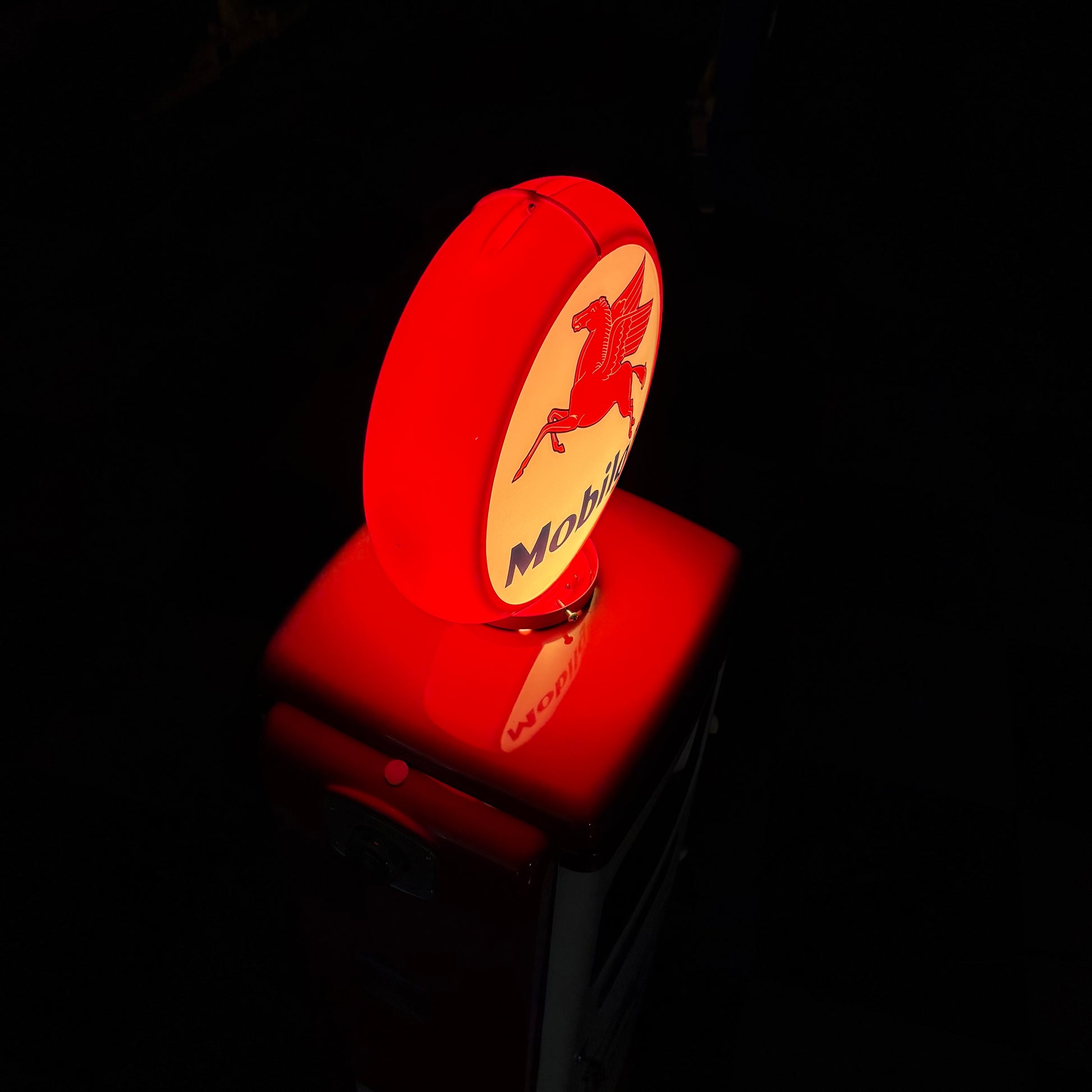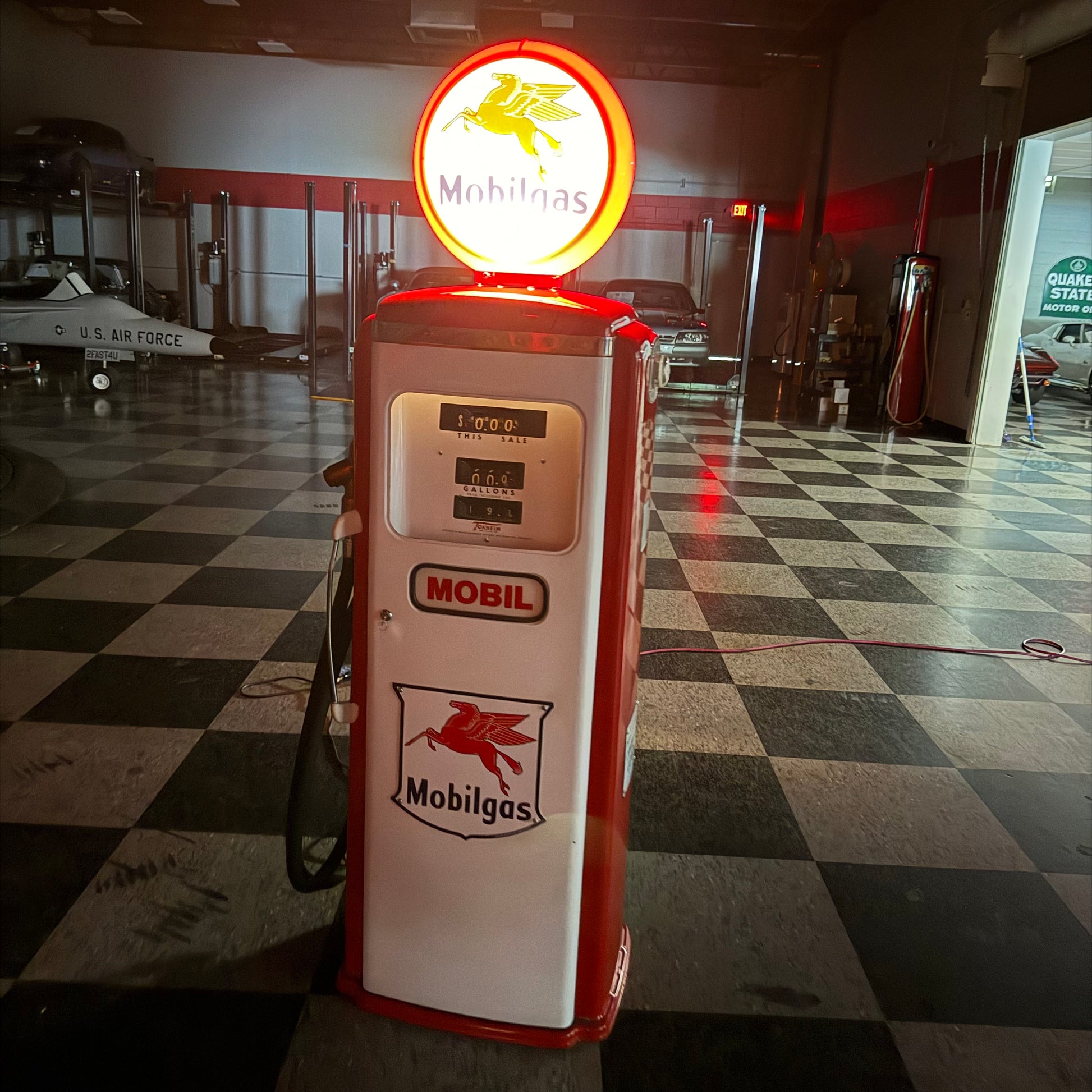 This vintage Mobilgas 39 Tokheim pump is ready for her new home and up for sale as the dealership downsizes it's collection. This is a Model 39 original pump. It is a type NAP. The serial number is 828706. This pump was usually found in the late 1940's and early 1950's. The remaining mechanisms inside are included, but this is a non-functional pump being sold for display. Both doors of the pump open. The globe on top is a re-production globe. The glass on each side is missing as shown in the photos. This is an older restoration, and has been used for displays at multiple car shows. There are some marks and scrapes as pictured. Beautiful antique piece ready to join your collection or car cave.